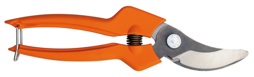 By-pass secateurs.  Narrow carbon steel cutting head for cutting flowers, herbs and shrubs.  Handles made of nylon reinforced with fibreglass.  Cutting capacity:  20mm.